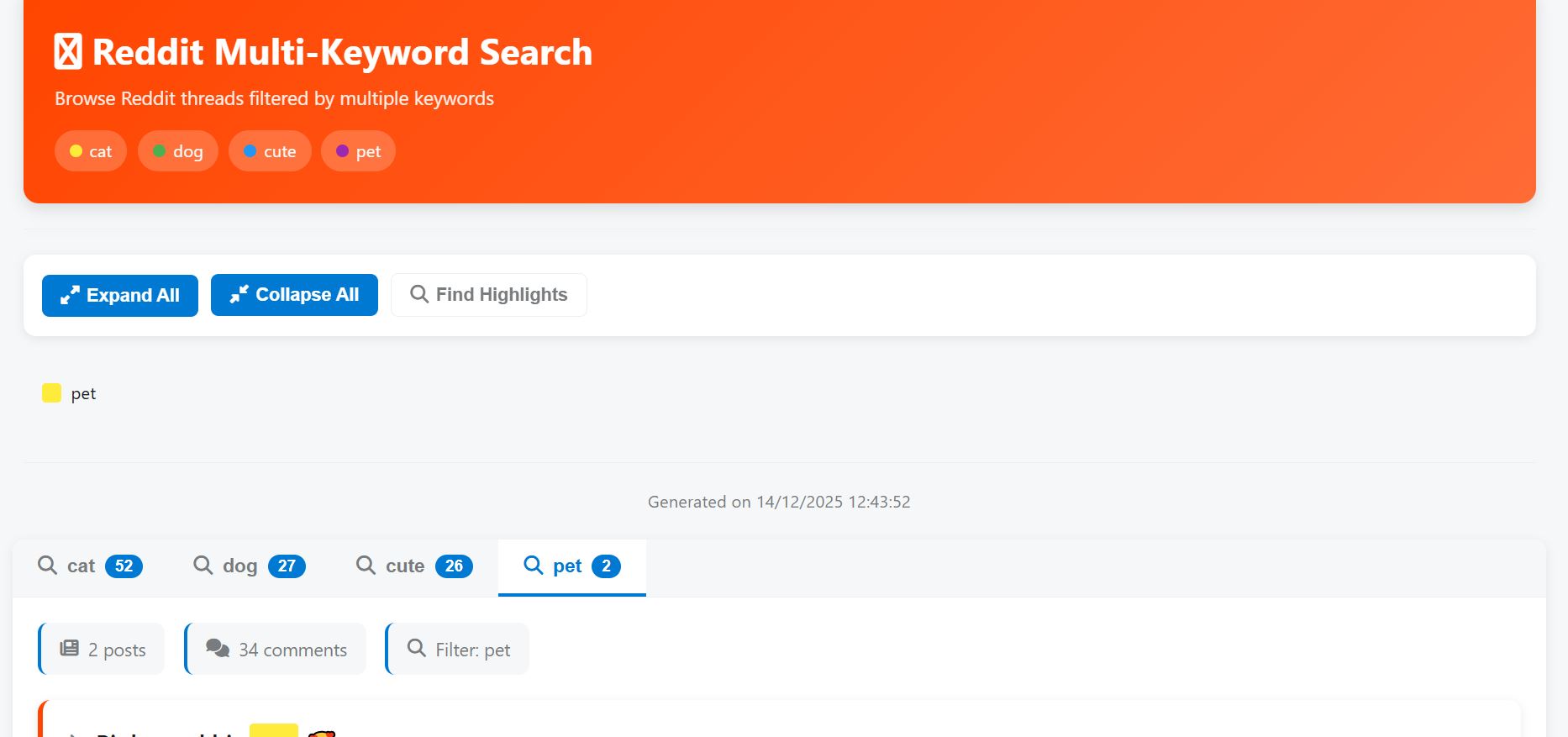 This is a complete, live system that automates Reddit intelligence. Input bulk keywords, target subreddits, and date ranges. It outputs two finished products: