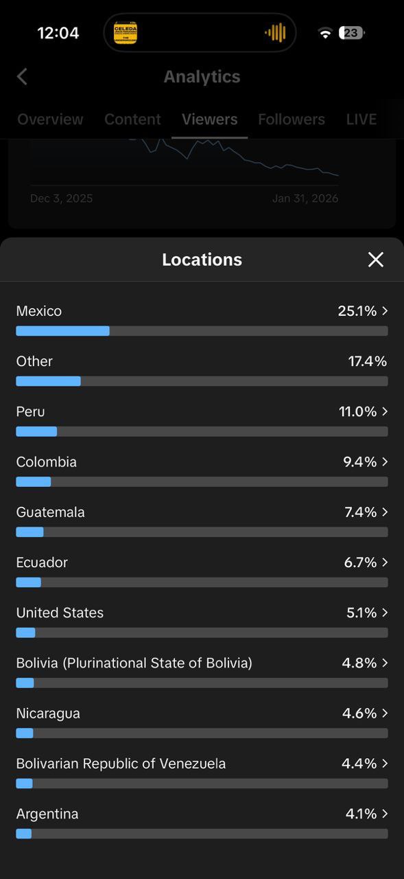 Country of followers (majority): México/Other