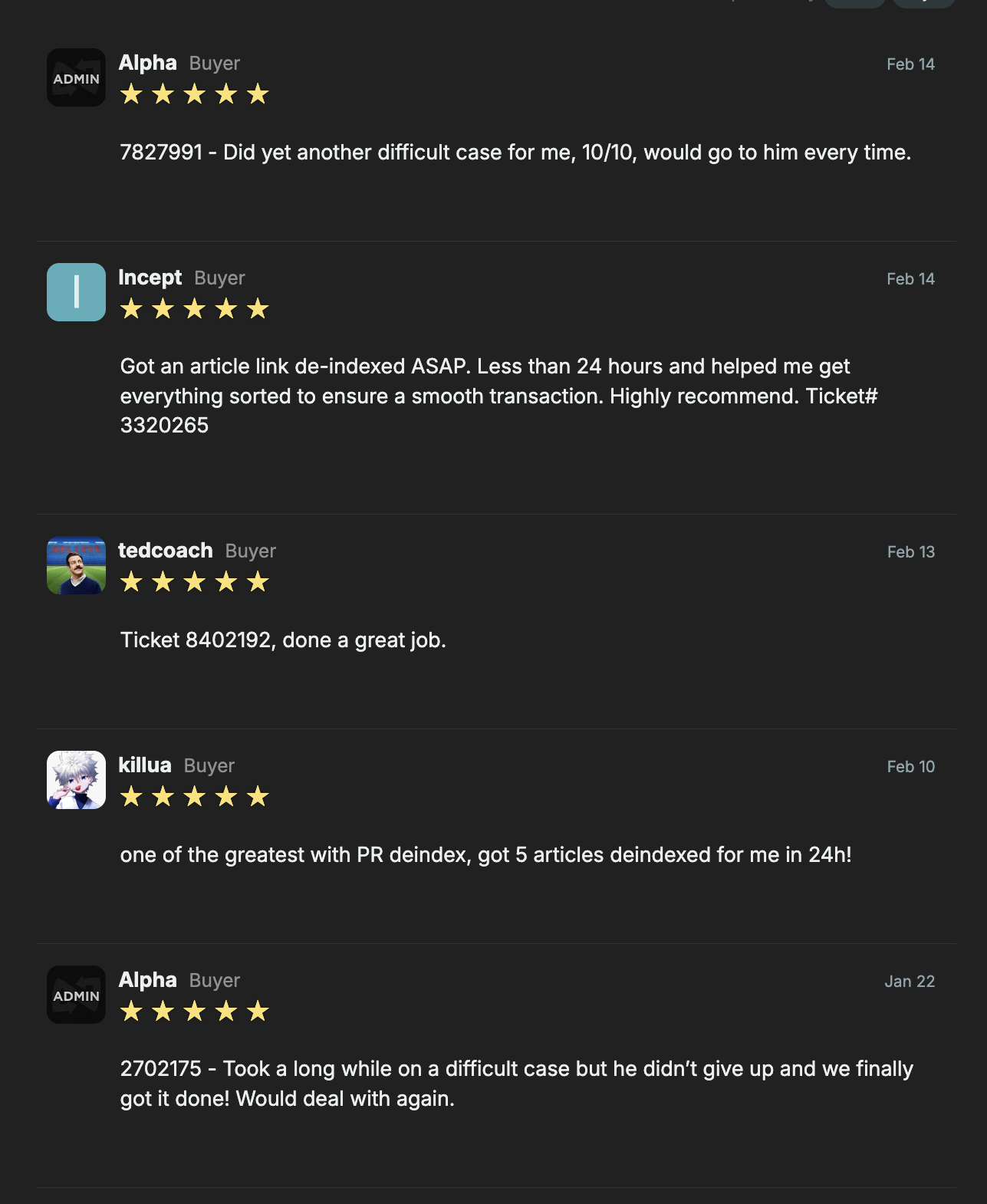 Deindexing — News Articles, Blogs, Forums, From $1,500 | Timeline: 24–48 hours (most cases), up to 7–15 days for complex matters