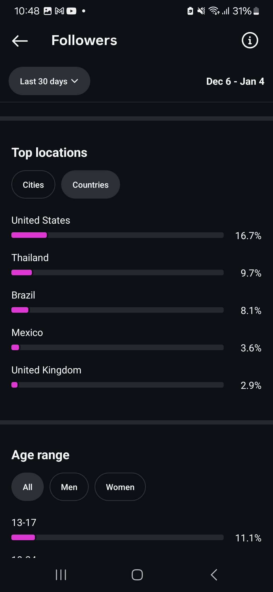 Country of followers (majority): USA