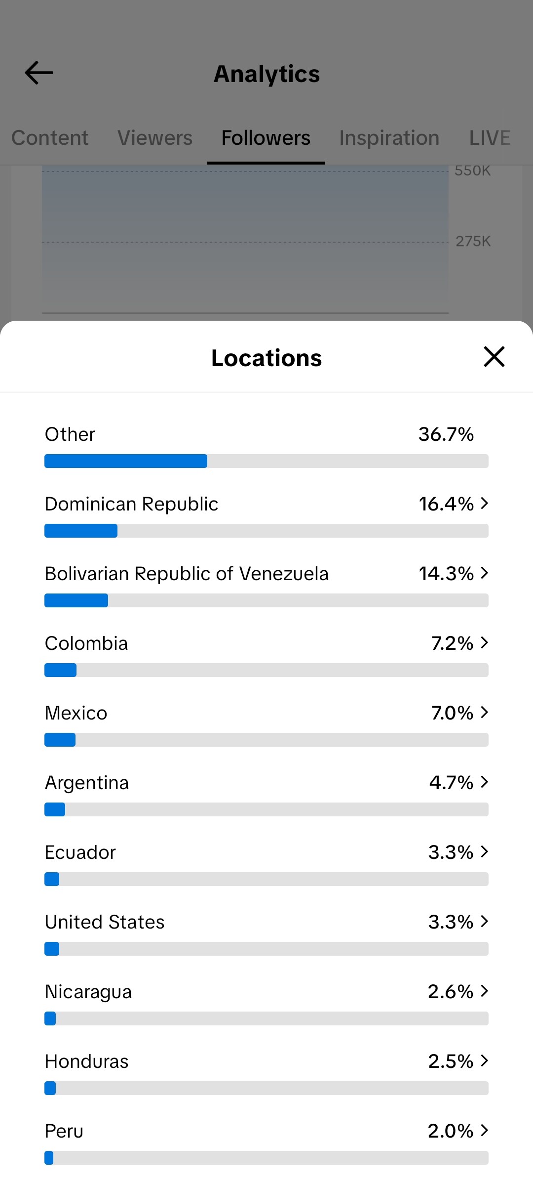 Country of followers (majority): dominican republic/ venezuela