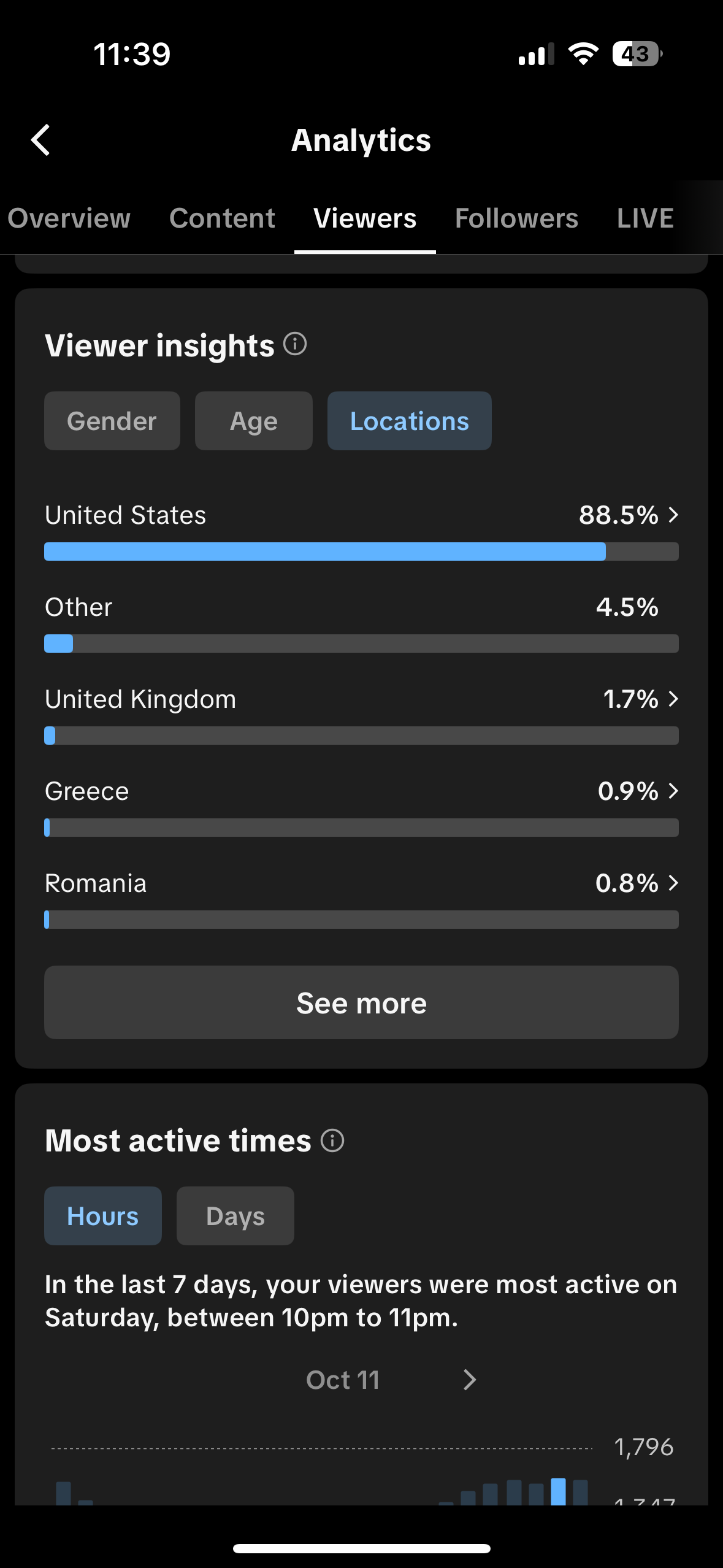 Country of followers (majority): America 80%