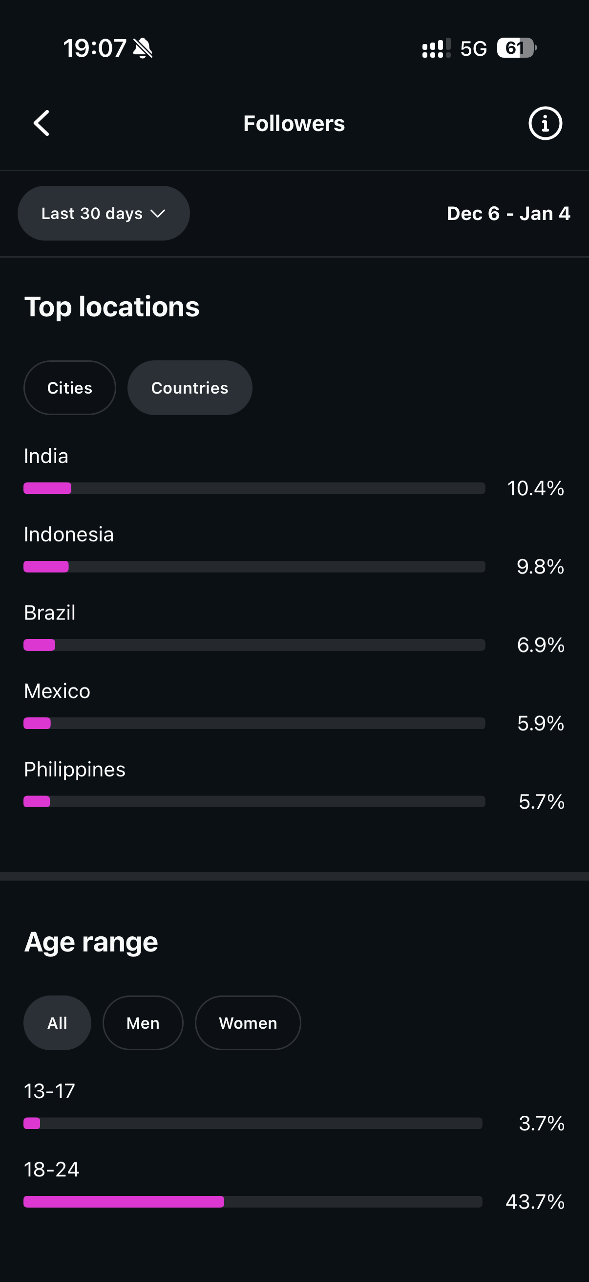 Country of followers (majority): Worldwide