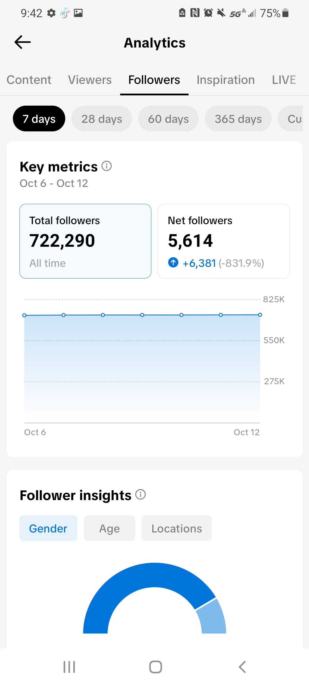 Description: selling tiktok account with organic follower 721k with boost or anything related i will post screenshots for the past 7 days with only 5 post weekly