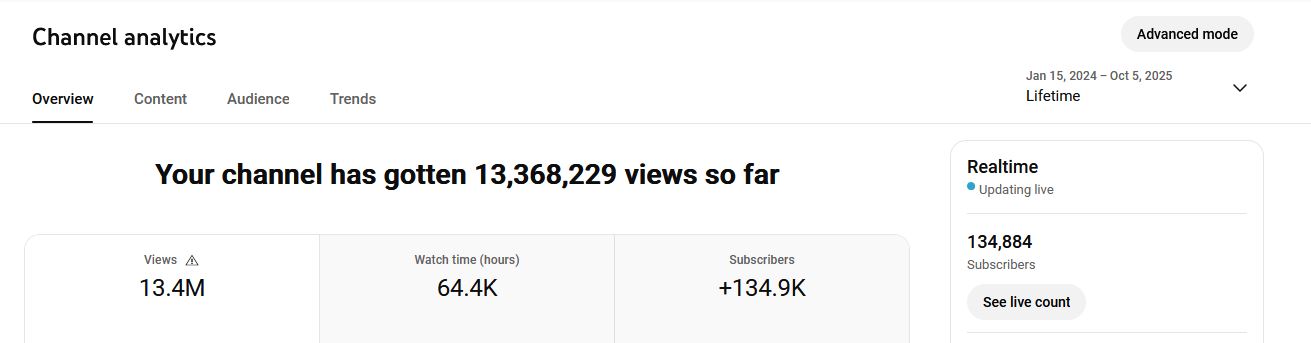 Amount of subscribers: 134,000+