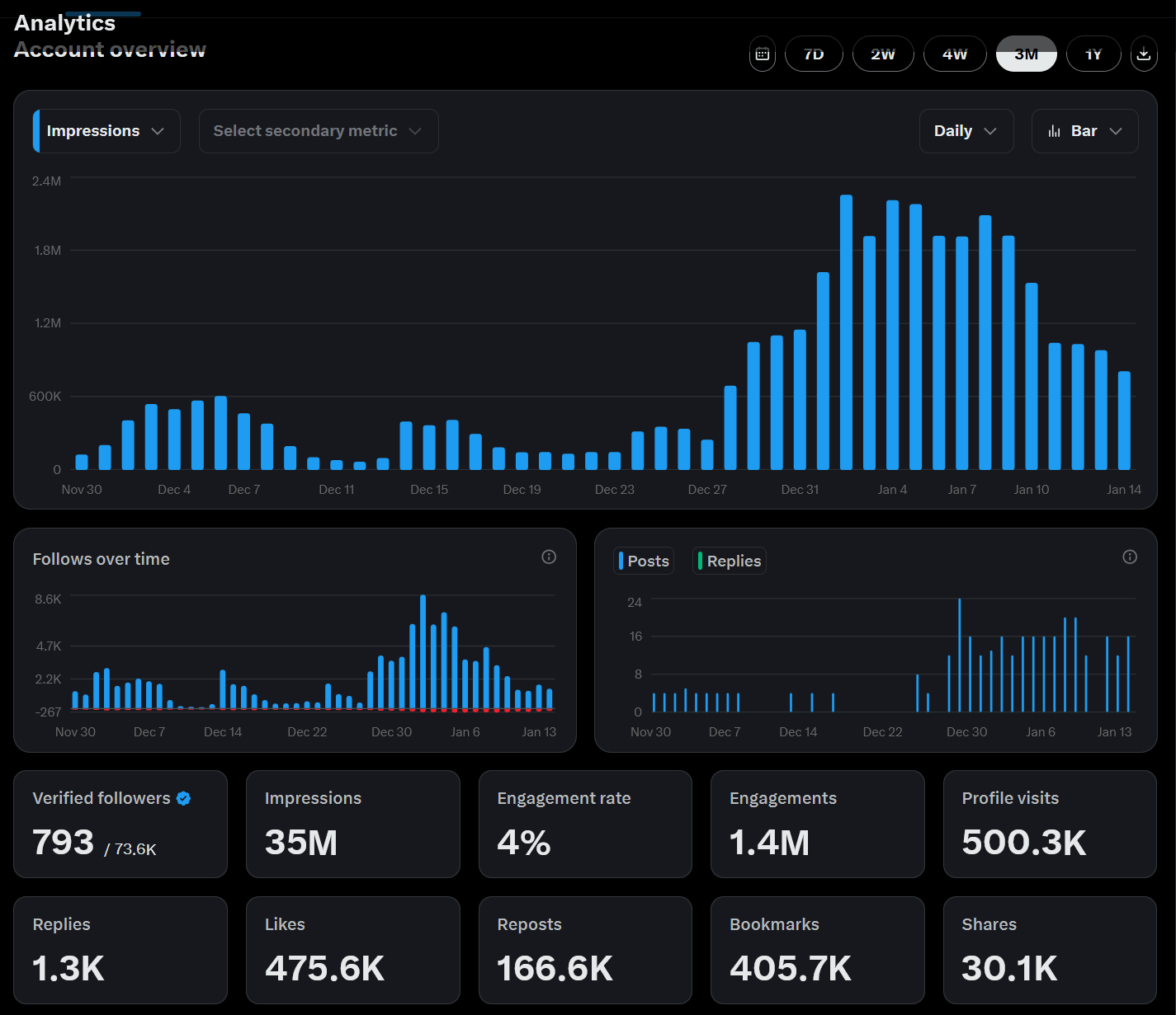 All the analytics are showing is in the perspective of 3 month.