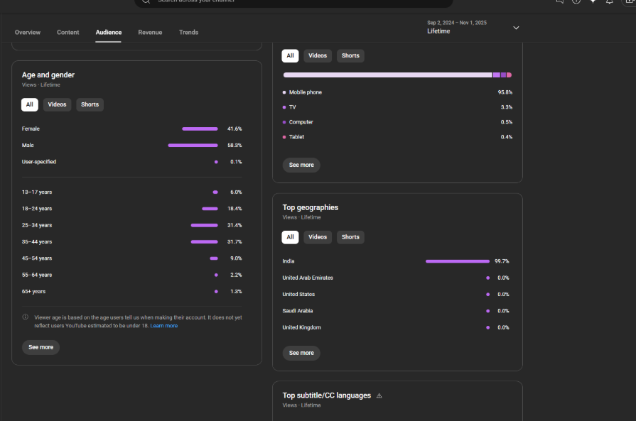 Country of subscribers (majority): India