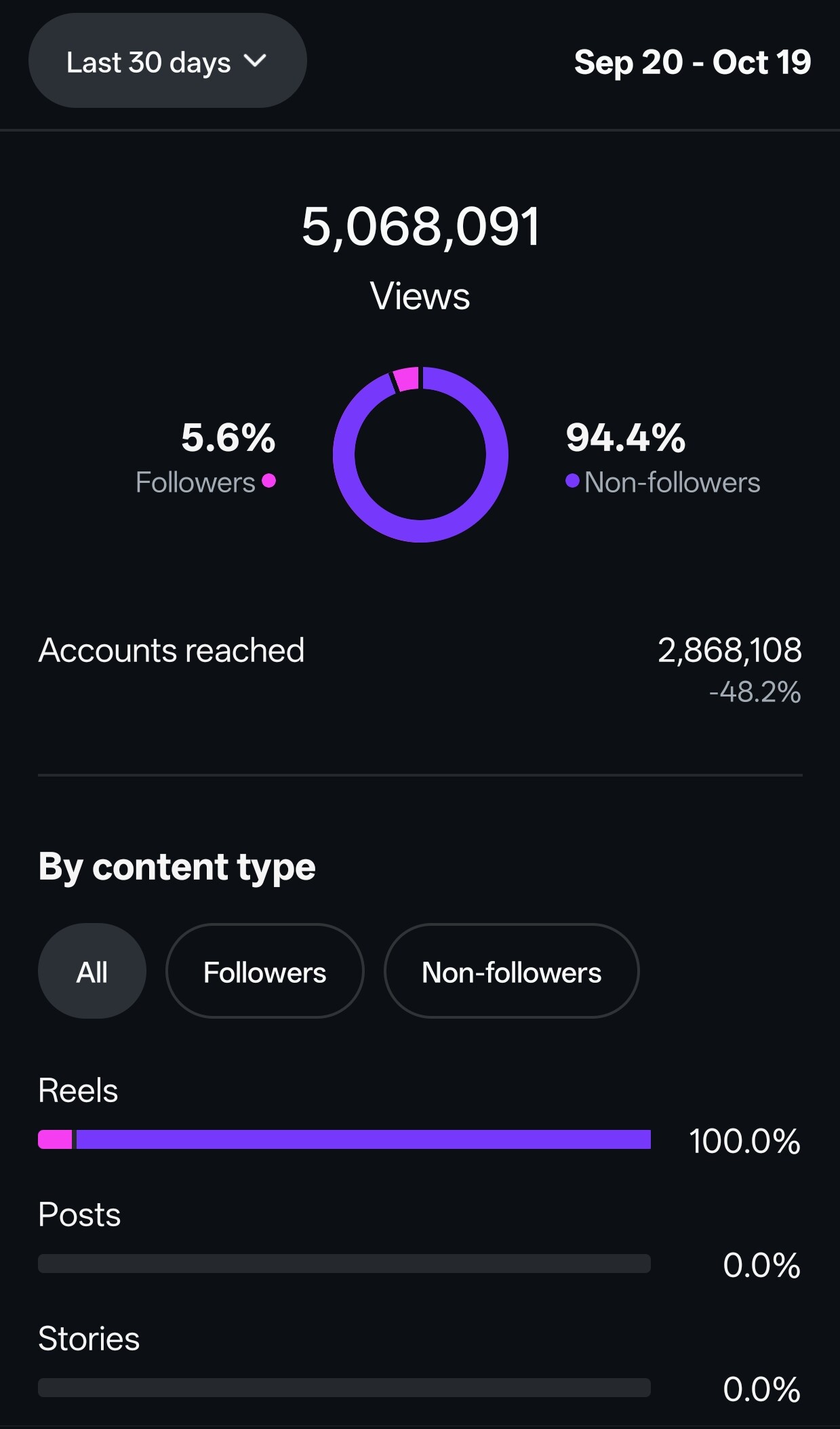 This IG page has 342k+ followers, primarily from Asia. The content revolves around comedy and drama skits, creating a highly engaged and active audience.