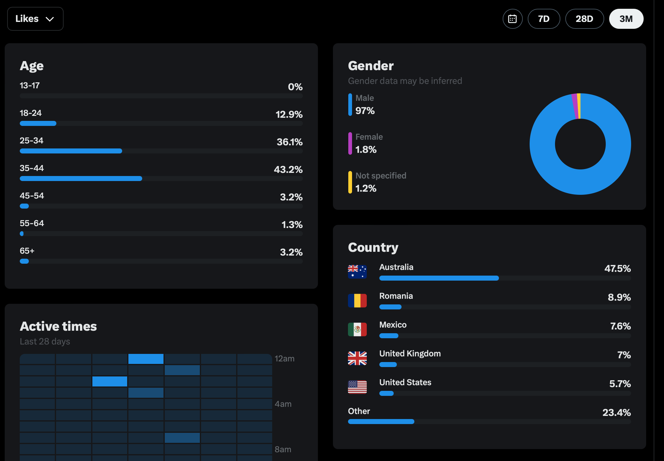 Country of followers (majority): Australia, USA, UK