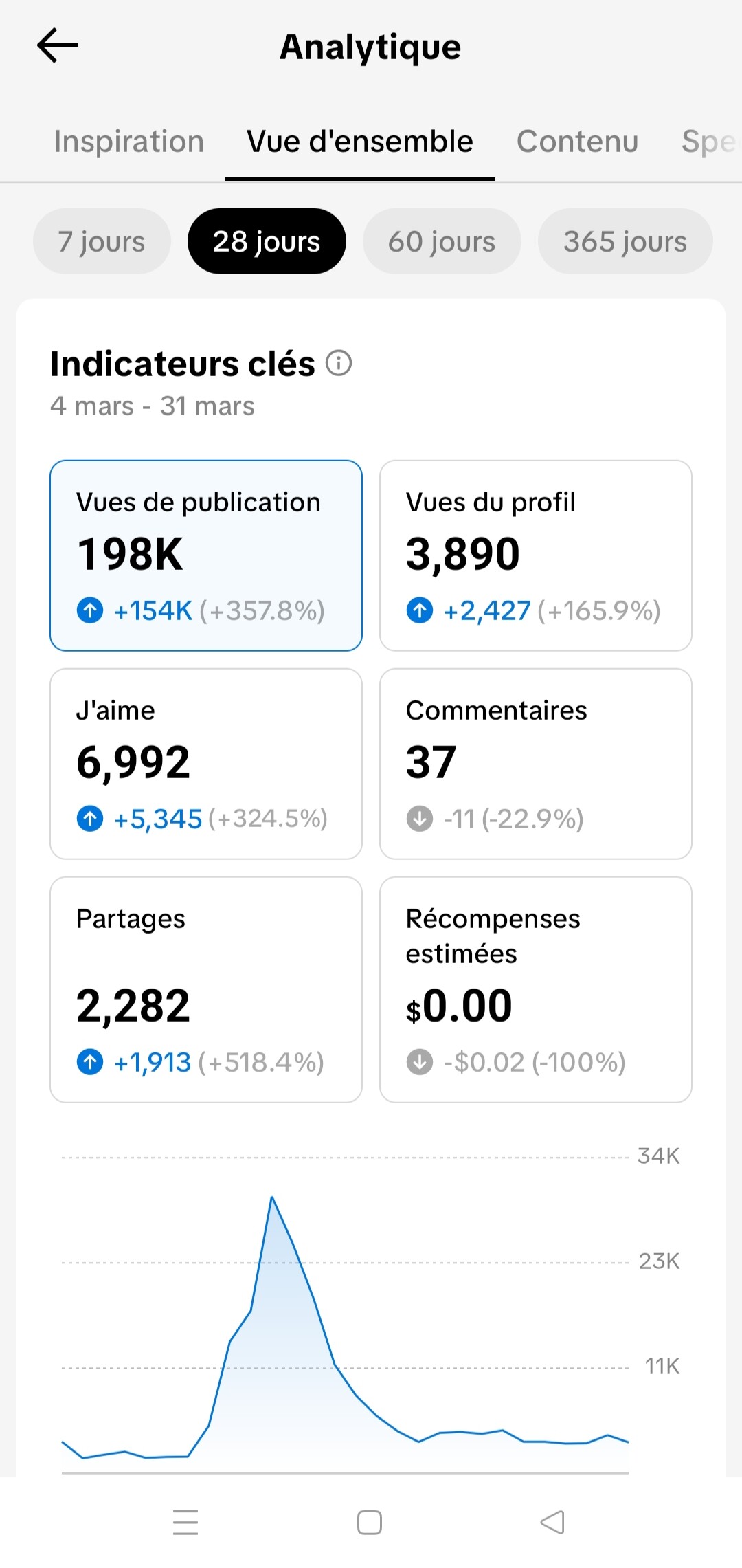 The account is already enrolled in the TikTok Rewards / Creator Program and is actively generating revenue