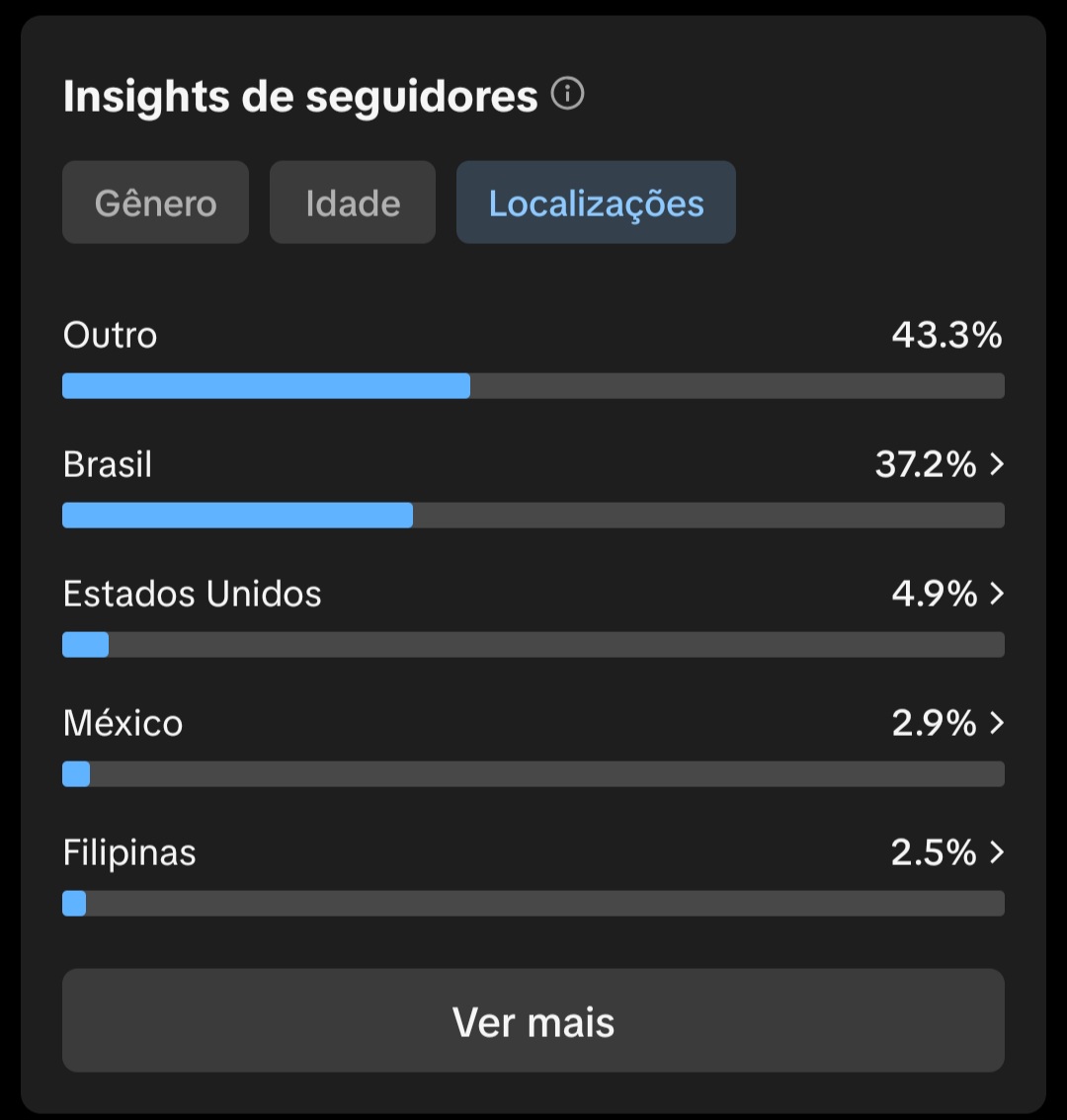 Country of followers (majority): 37,2% in Brazil Other countries 62,8%