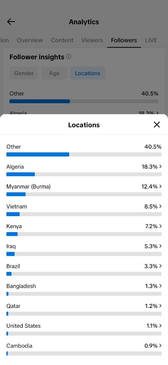 Country of followers (majority): America & Algeria