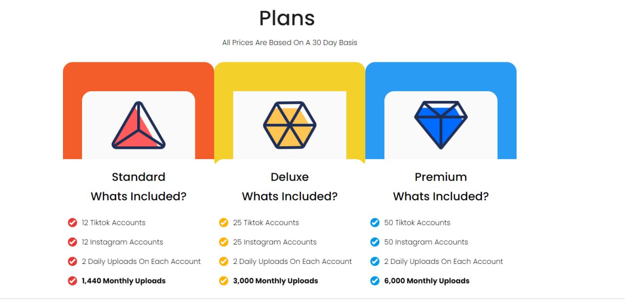 3 Posts per day per acount daily ( 18 daily posts ) for 30 days