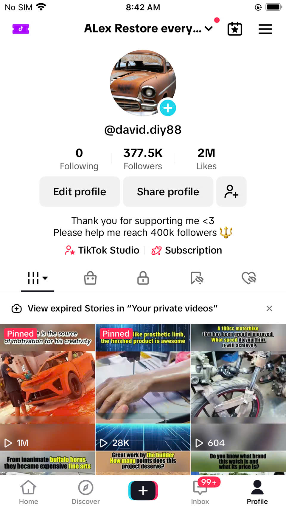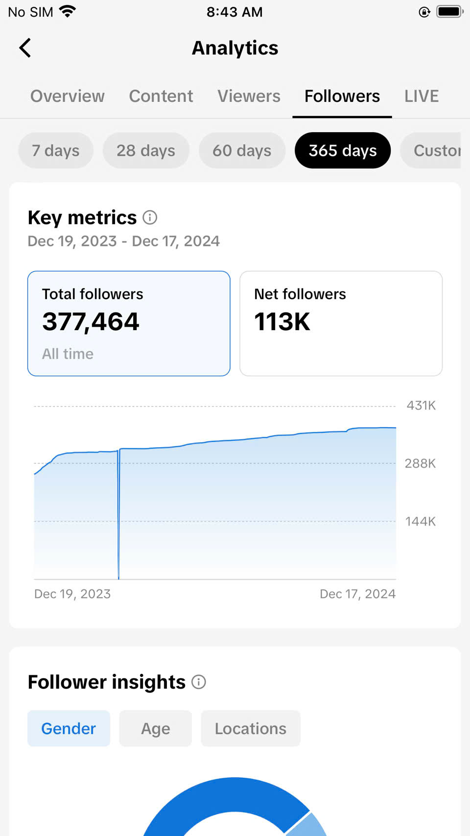Country of followers (majority): 21% US Amount of fans/followers: 377.000 Topic/Niche: daily life Promotion methods used? (Organic/S4S/Follow Unfollow/Engagement Networks): Organic