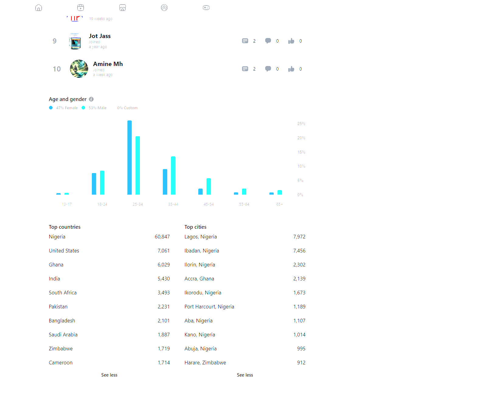 - Demographics: 53% Male, 47% Female, strong base in Nigeria and other international markets
