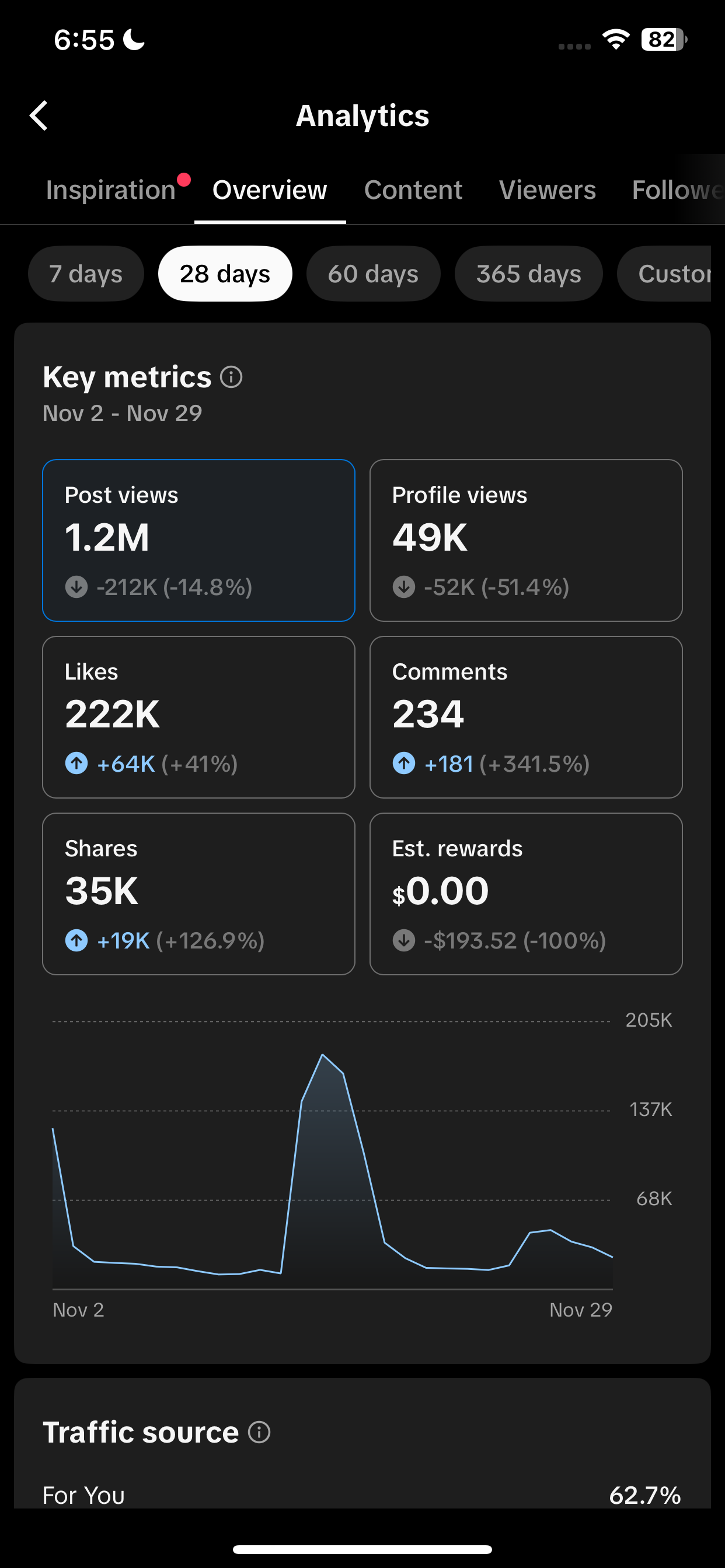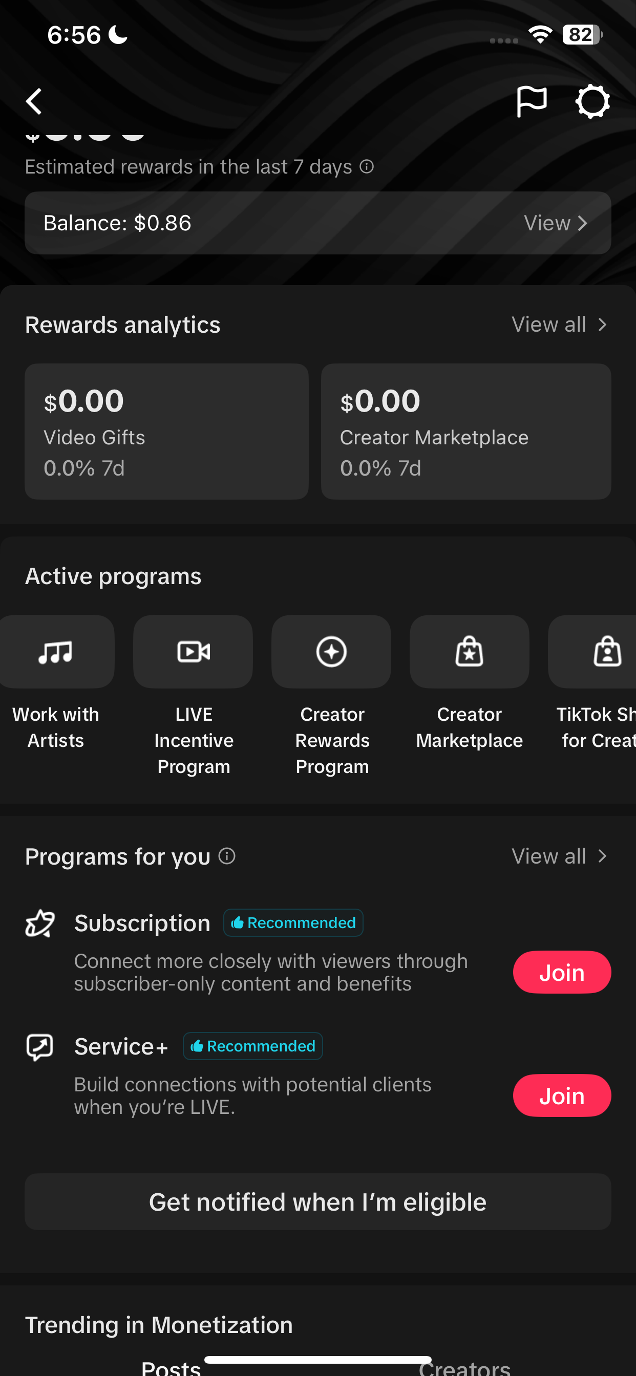 m likes creativity program and tiktok shop works everything is good on the account no strikes ever give me your best offer