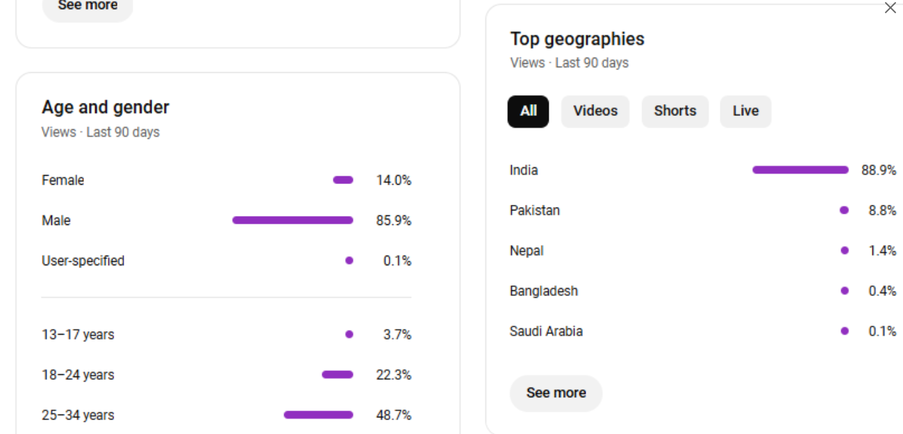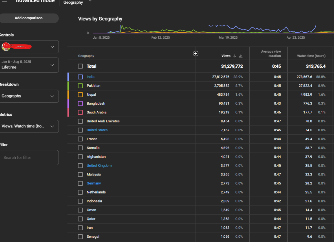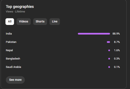Country of subscribers (majority): india, Pakistan, Nepal, Saudi arabia, bangladesh