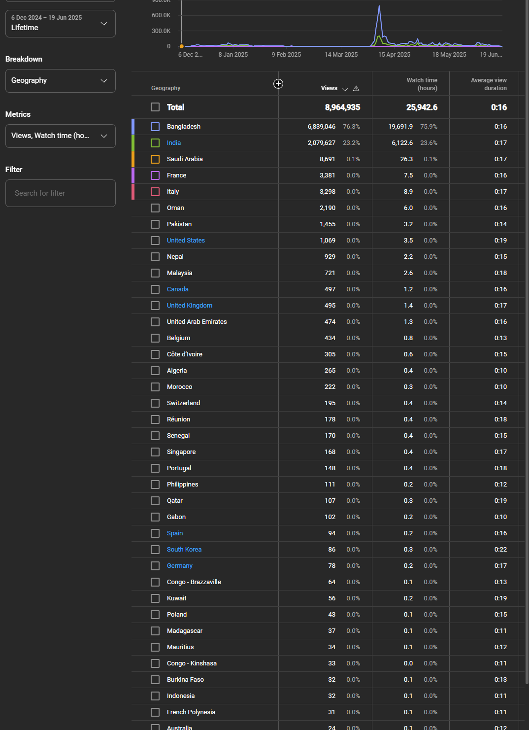 Country of subscribers (majority): bangladesh