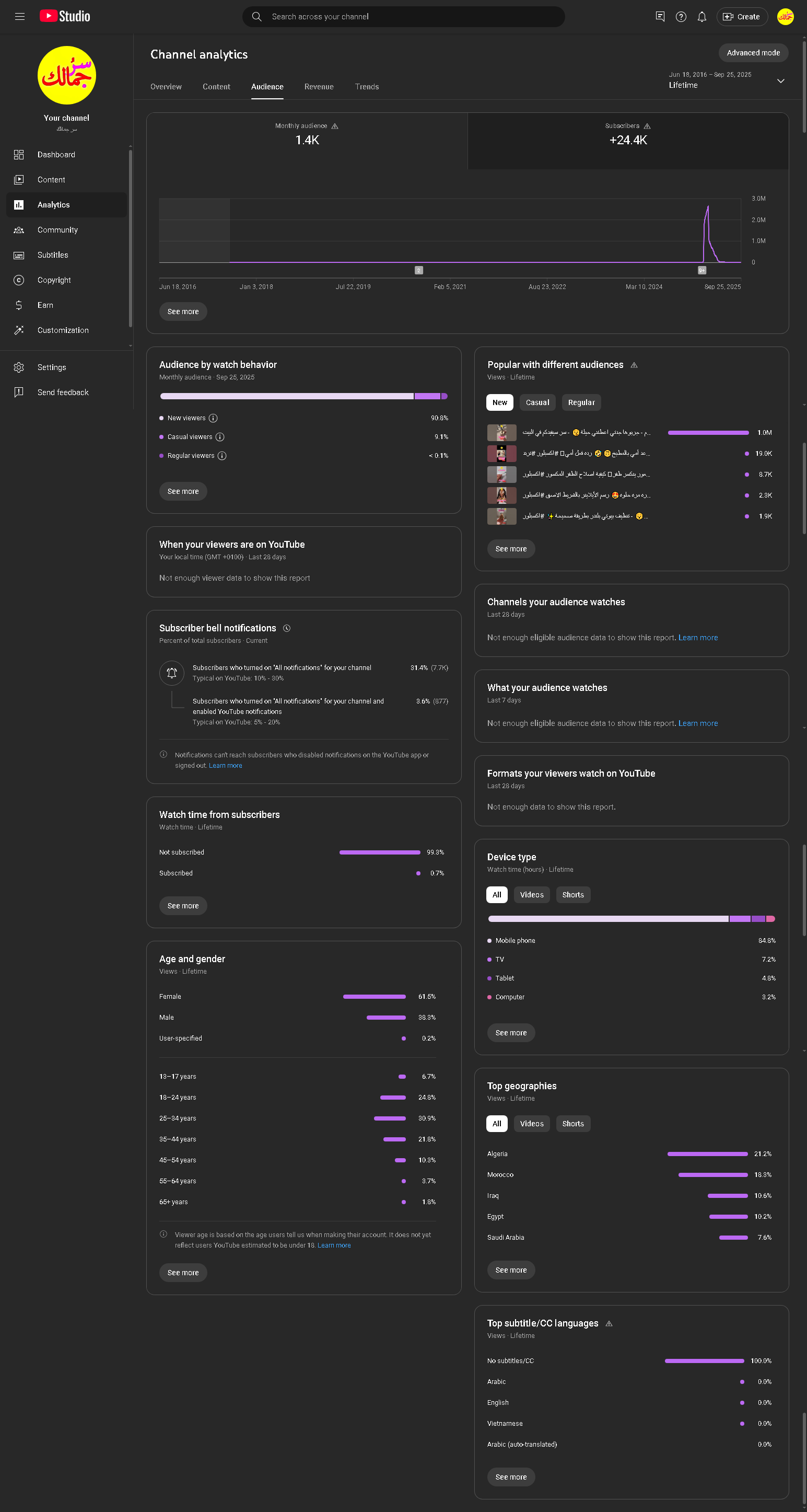 Country of subscribers (majority): Morocco/Algeria